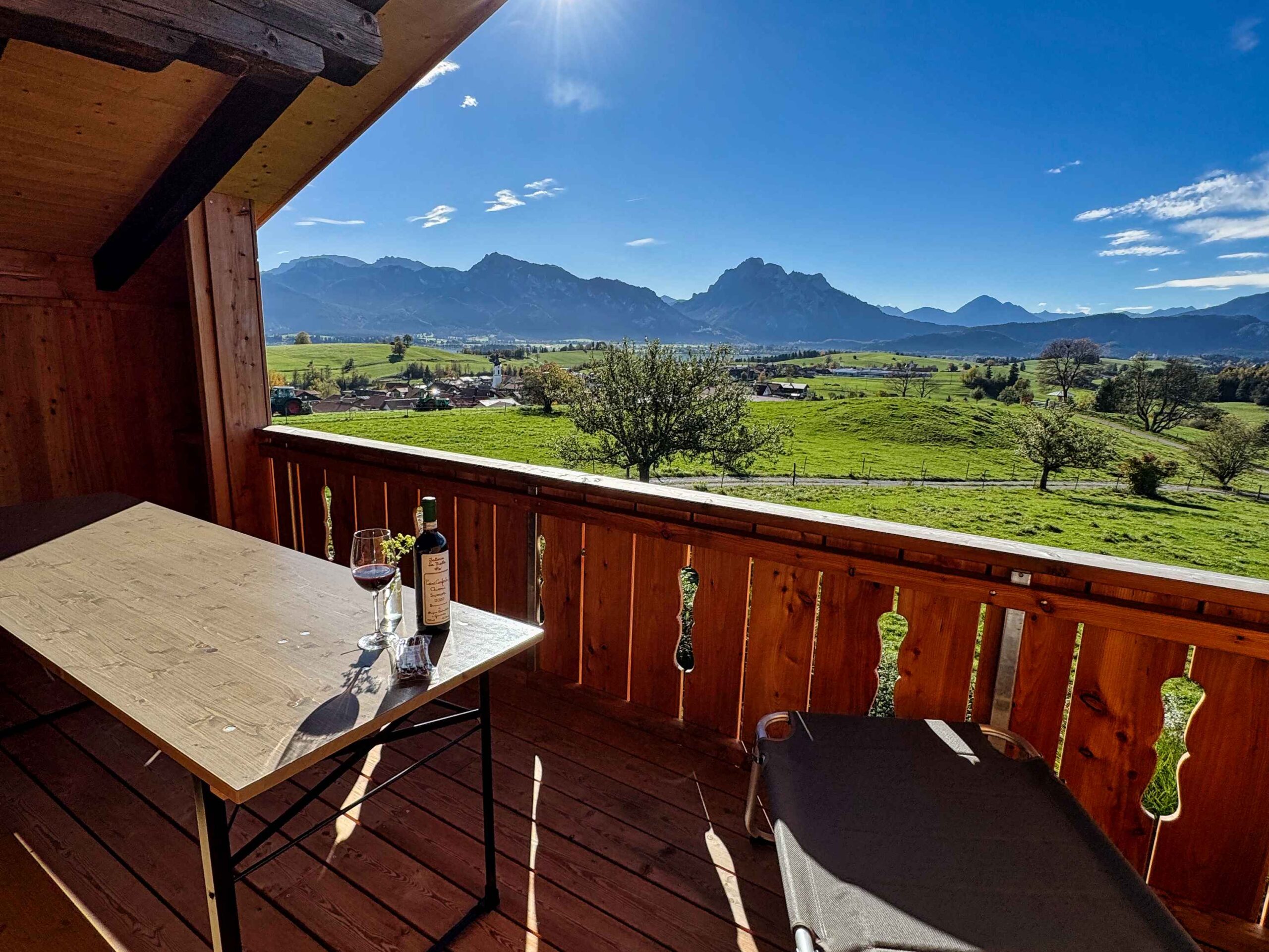Im See Chalet genießt Du auf 59 m² bodenständigen Luxus & Design mit hochwertiger Handwerksqualität & Ausstattung – und vom großen Südbalkon aus den schönsten Panoramablick im Allgäu: auf den Forggensee, die Allgäuer & Tiroler Alpen und Schloss Neuschwanstein & Hohenschwangau.