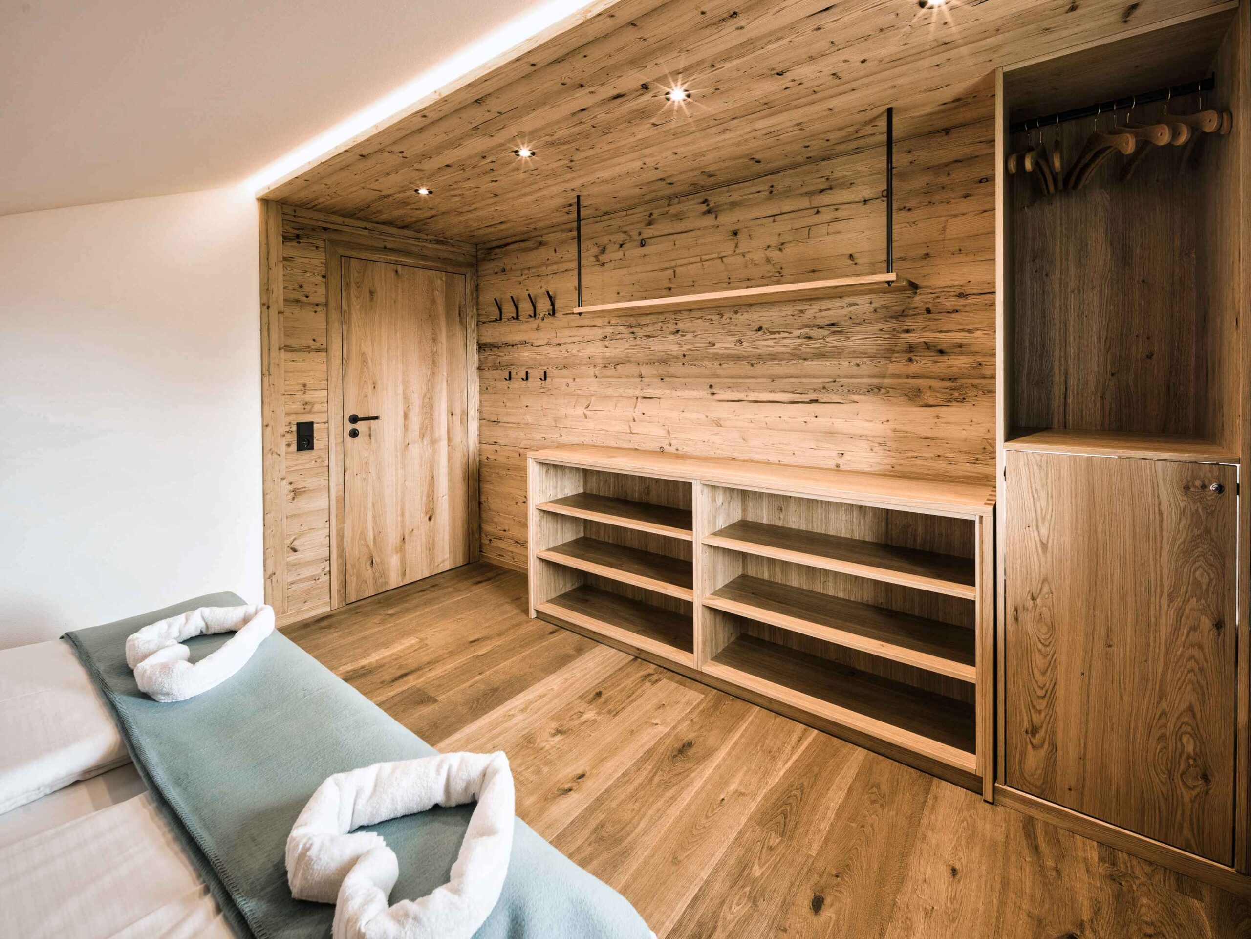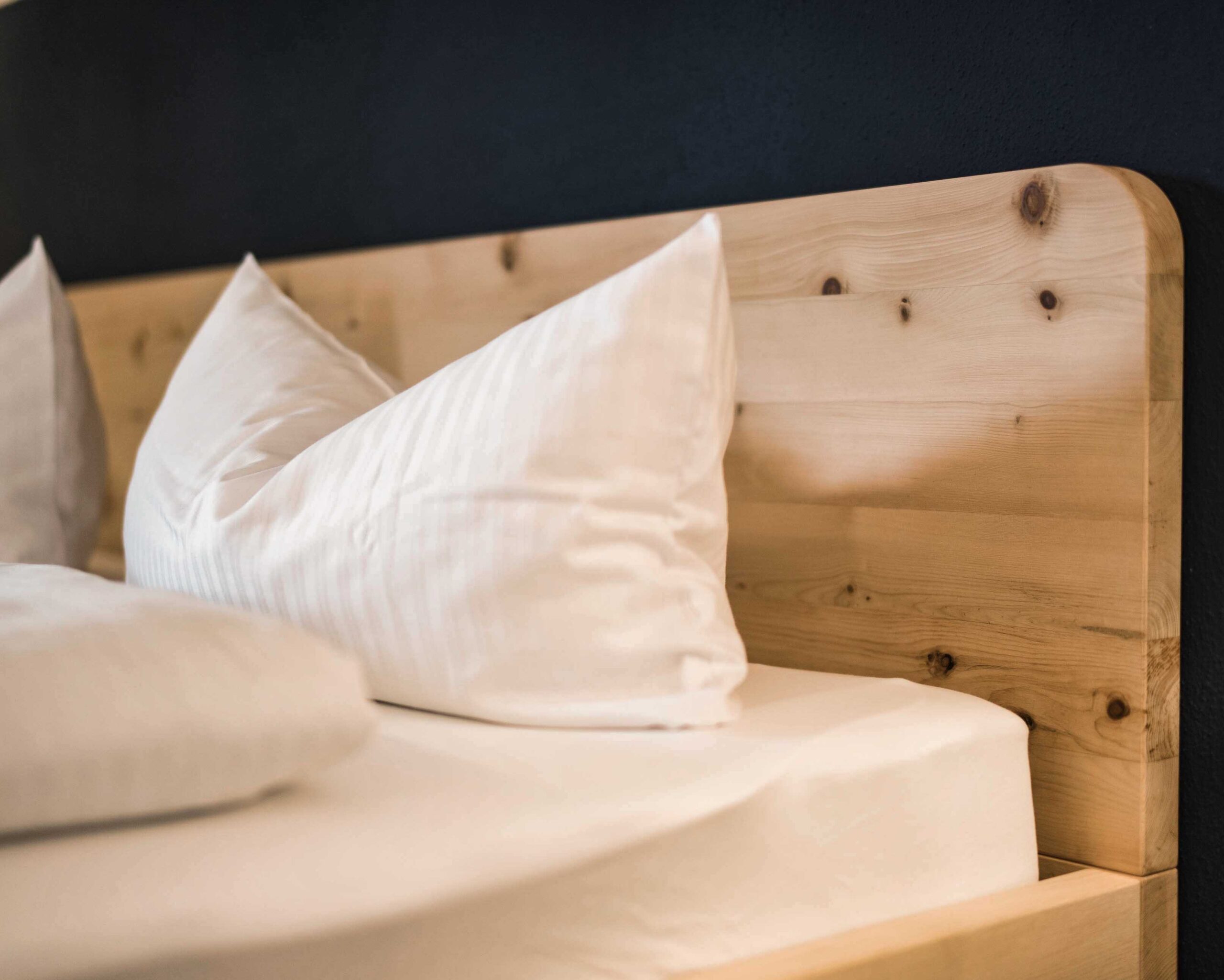Im Nordzimmer schläfst Du wunderbar ruhig und kühl – im hochwertigen Zirbenbett mit Natur-Schlafsystem, Cashmere-Merino-Bettdecke in Übergröße (155×220) und Bio-Bettwäsche. Verdunklungsvorhänge und Insektenschutzgitter sorgen für erholsame Nächte und beste Regeneration für einen energiereichen Tag.