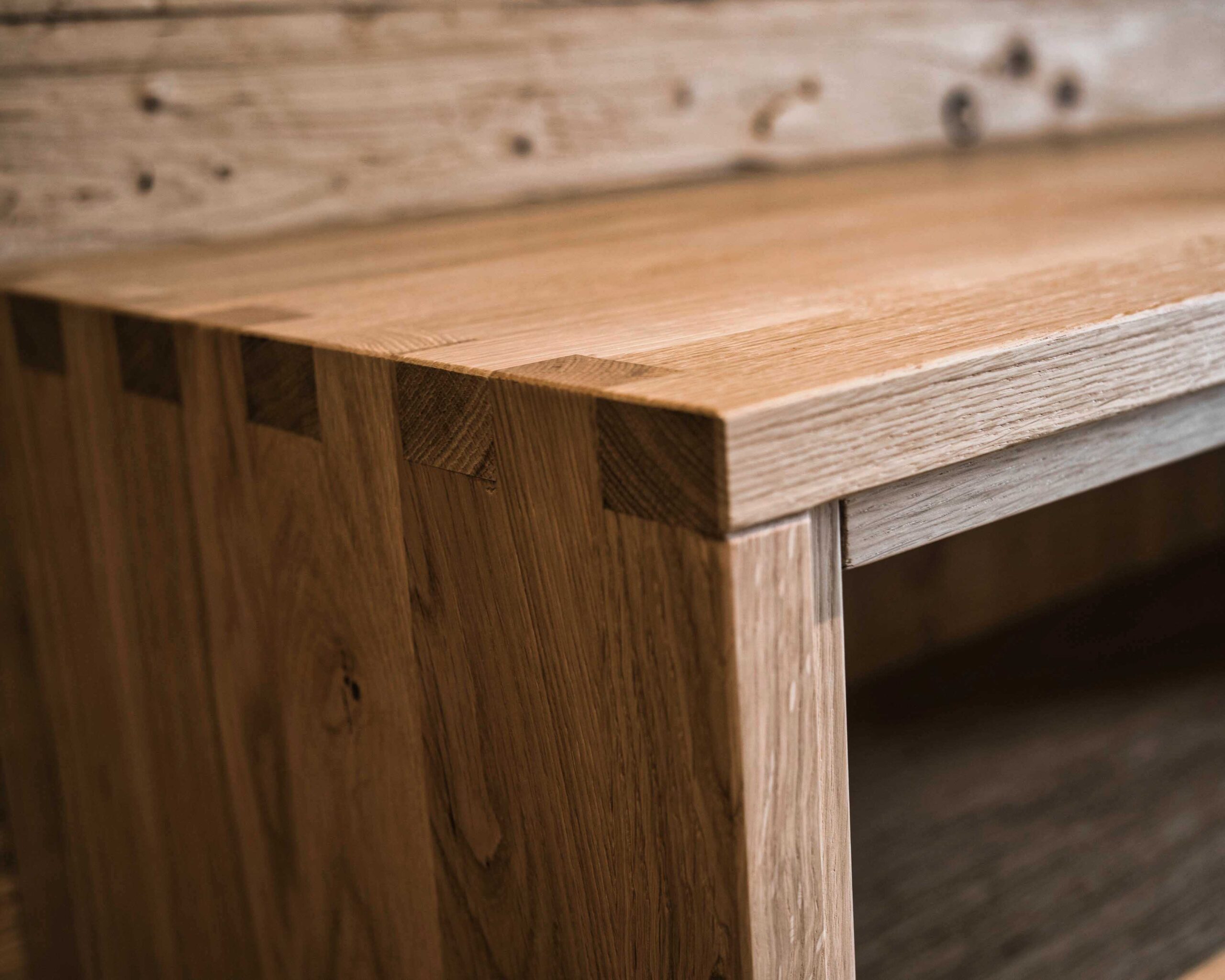 Das gesamte See Chalet wurde vom Schreiner individuell aus regionalem Holz & Altholz gefertigt. Der hochwertige Eichenholzboden lädt zum Barfußlaufen ein. Straßenschuhe sind im Chalet nicht erlaubt – bring gerne Deine liebsten Kuschelsocken mit.